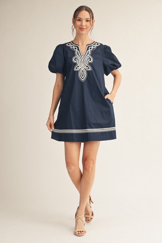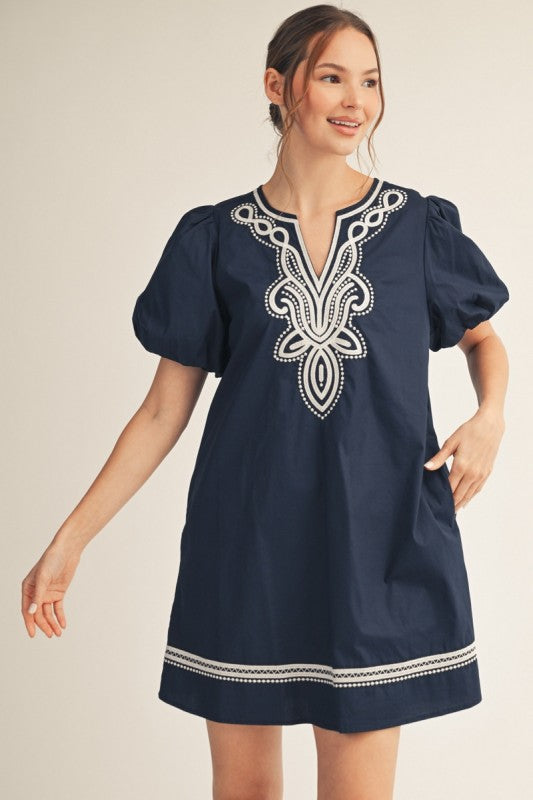 Effortless elegance meets intricate artistry in this stunning shift dress. Delicate embroidery detailing adorns the neckline and sleeves, adding a touch of sophistication to an easy-to-wear silhouette. The relaxed fit flatters every figure while the premium fabric drapes beautifully, making it perfect for brunch dates, casual gatherings, or elevated everyday wear. Versatile enough to dress up with heels or down with sneakers, this piece becomes an instant favorite in your wardrobe. Timeless style that celebrates craftsmanship and comfort in one gorgeous package.