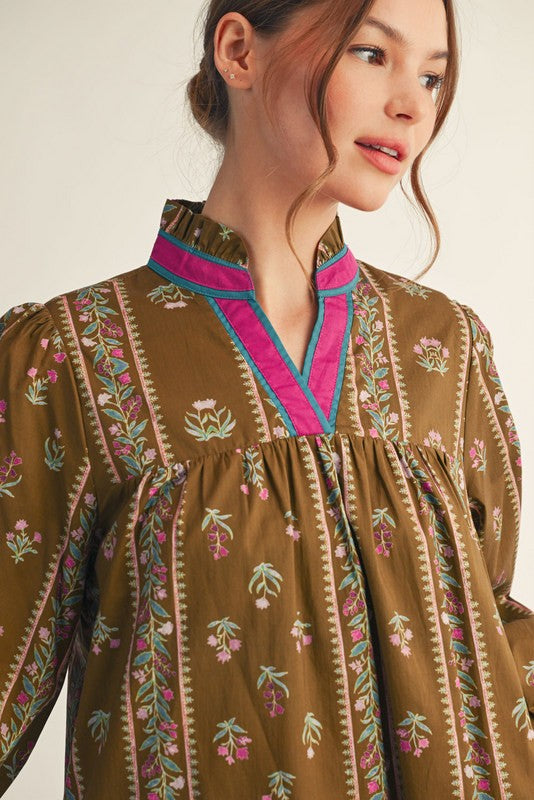 Elevate your style with this Ruffled Neckline Floral Dress, designed to flatter every figure. The delicate ruffled neckline adds a romantic touch, while the vibrant floral pattern brings fresh, feminine charm. Perfect for garden parties or casual outings, this dress combines comfort with effortless elegance, making