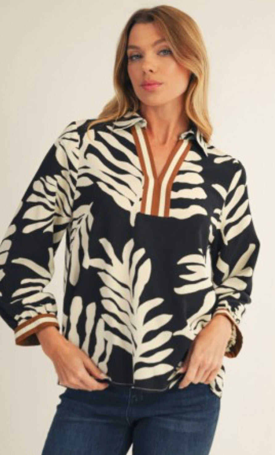 Elevate your style with the Leaf Print Top featuring a chic pleated back detail. This unique design adds a touch of elegance and movement, making it perfect for both casual outings and dressier occasions. The refreshing leaf pattern brings a natural, vibrant feel to your wardrobe, while the breathable fabric ensures all-day comfort. Make a statement effortlessly with this flattering and versatile top that combines style and ease in one beautiful piece.
