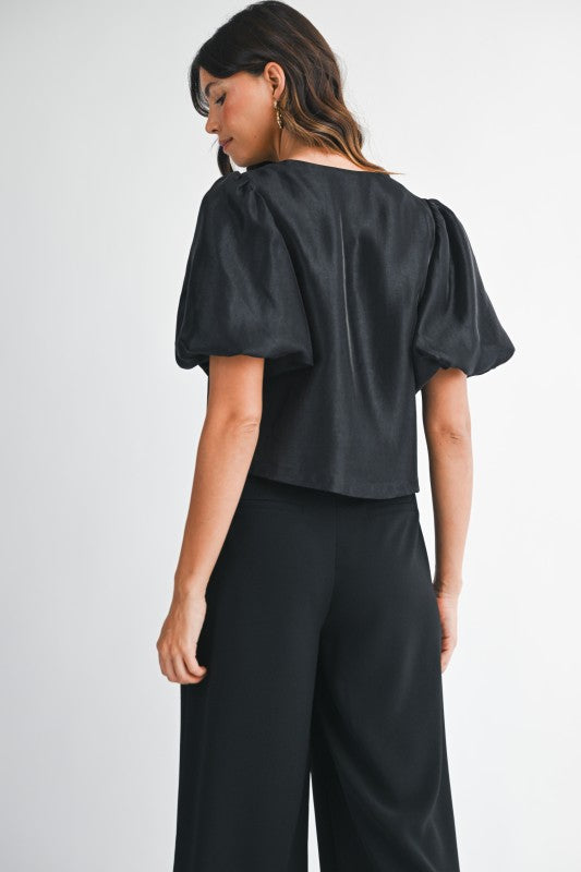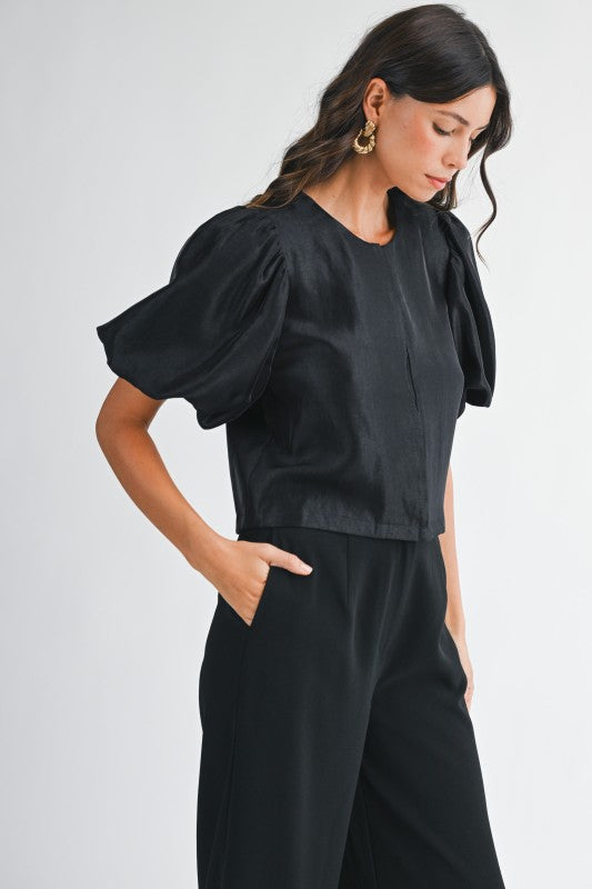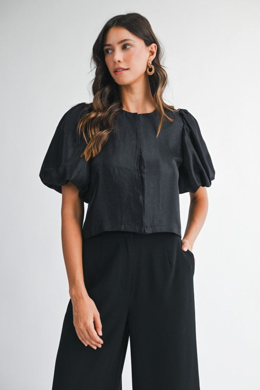 Satin Puff Sleeve Top