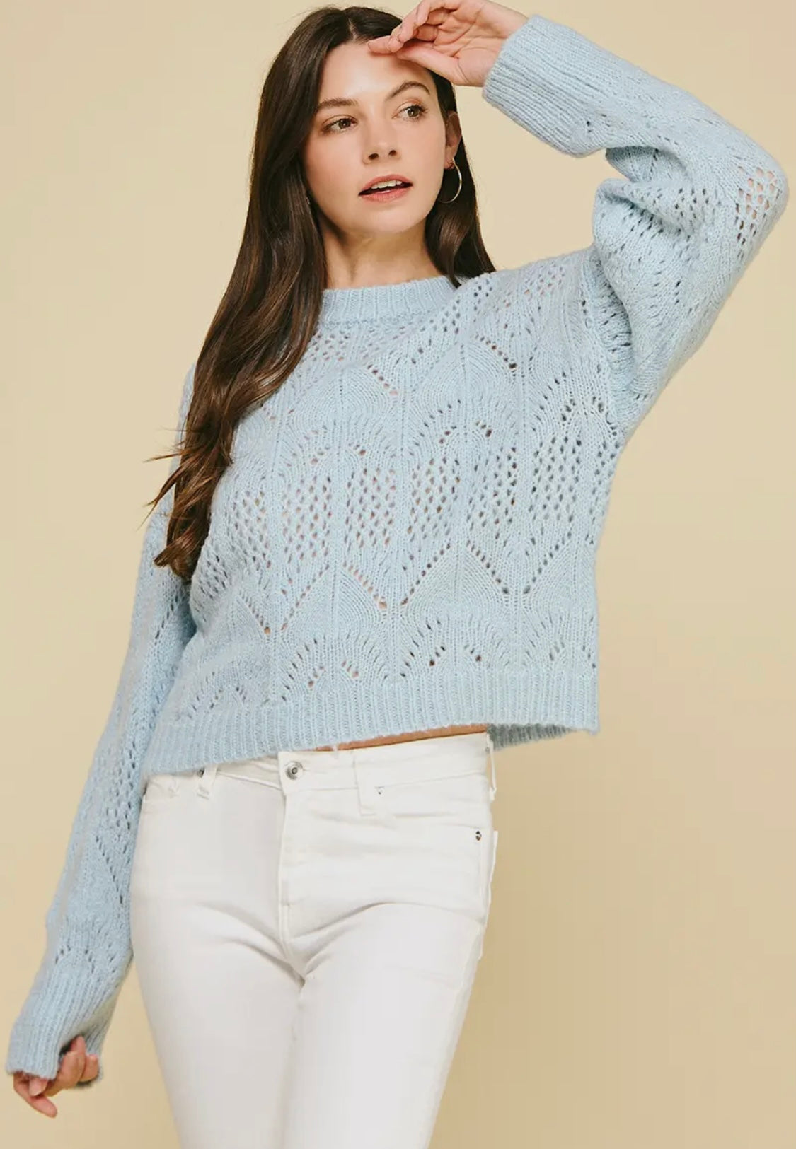 Solid Eyelet Detail Sweater