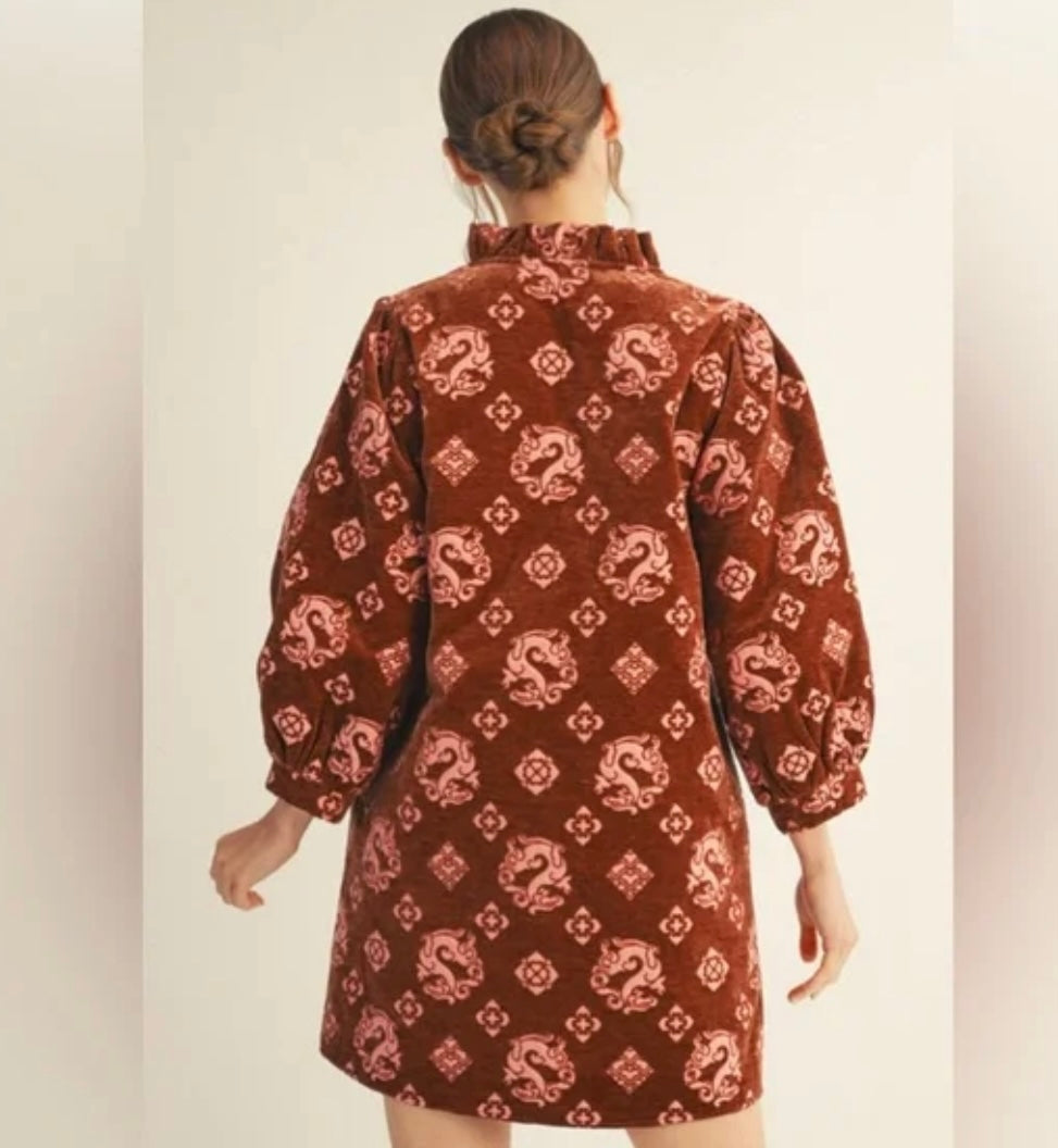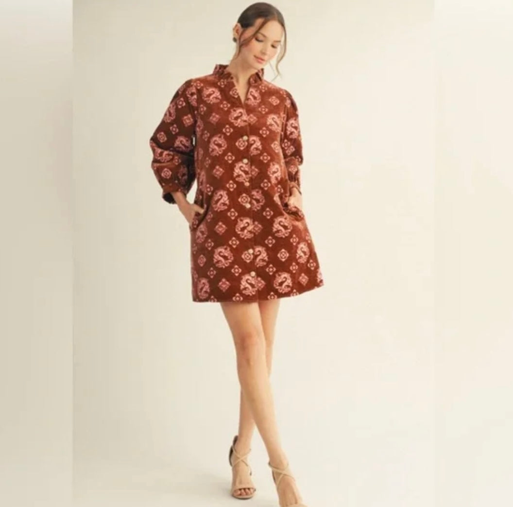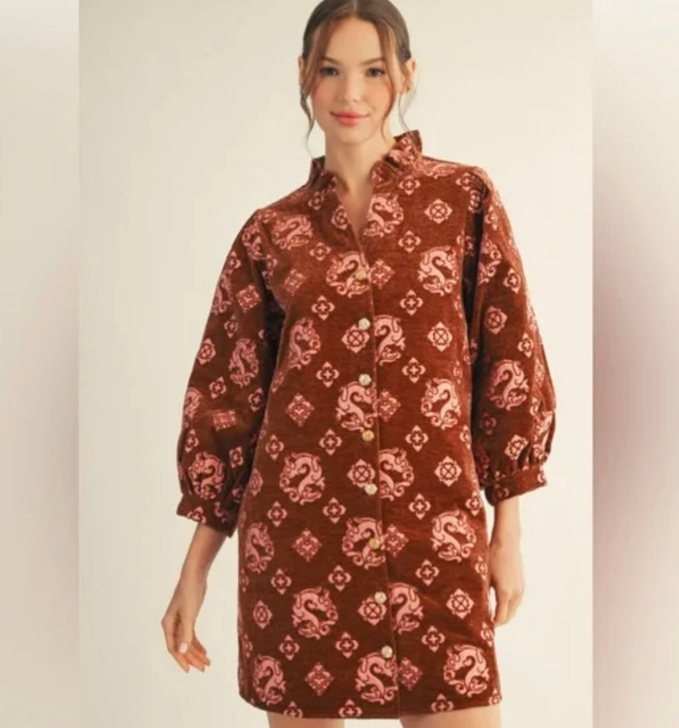 Elevate your wardrobe with this sophisticated Button Down Jacquard Dress, where timeless elegance meets modern versatility. The intricate jacquard weave adds visual depth and texture, while the classic button-down front offers effortless styling options—dress it up for special occasions or down for everyday sophistication. Perfect for transitioning between seasons, this piece flatters with its structured silhouette and refined details. Whether you're heading to the office, a brunch date, or an evening event, this dress delivers polished confidence with every wear.