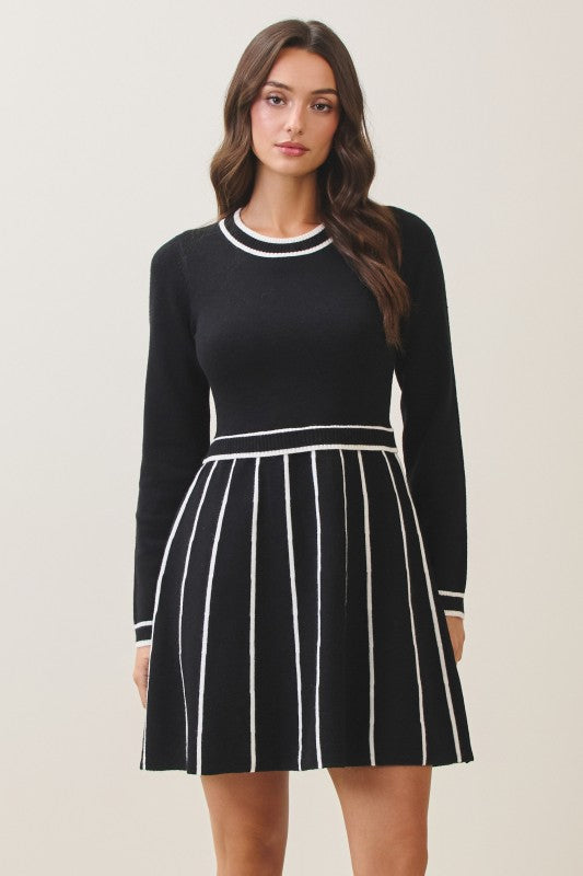 This Contrast Knit Mini Dress combines bold style with comfortable wear. Its eye-catching color blocks create a modern, flattering silhouette, while the soft knit fabric ensures all-day ease. Perfect for both casual outings and chic evenings, this dress lets you stand out effortlessly wherever you go. Elevate your wardrobe with a piece that’s as versatile as it is striking.