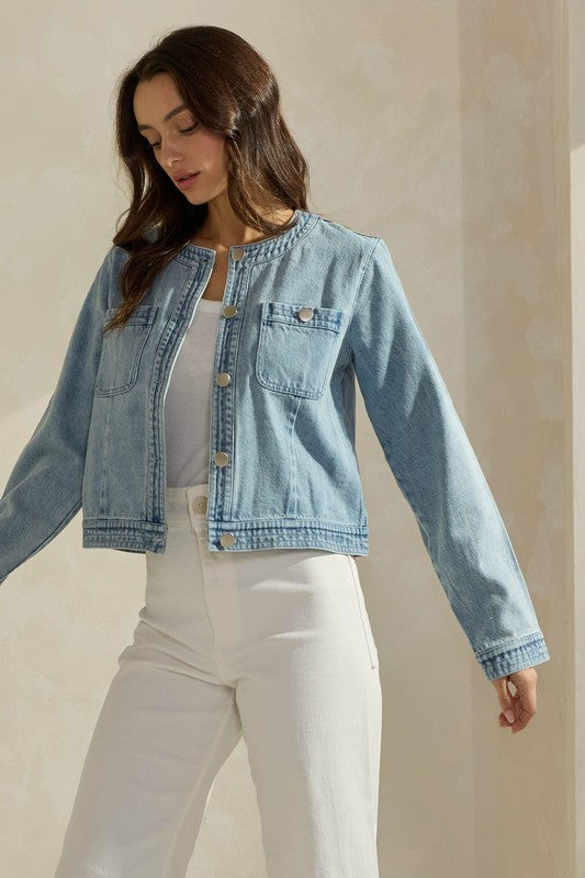 Elevate your casual wardrobe with the Gigi Denim Jacket, designed for effortless style and lasting comfort. Its classic cut pairs perfectly with any outfit, while durable denim ensures it stands up to everyday wear. Whether layered over a tee or dress, this jacket adds an instant cool, timeless edge to your look. Make this versatile staple your go-to outerwear for season after season.